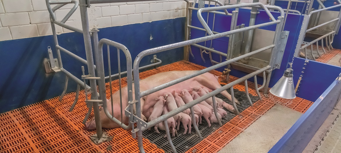 - Sides of farrowing frame help protect piglets from overlaying