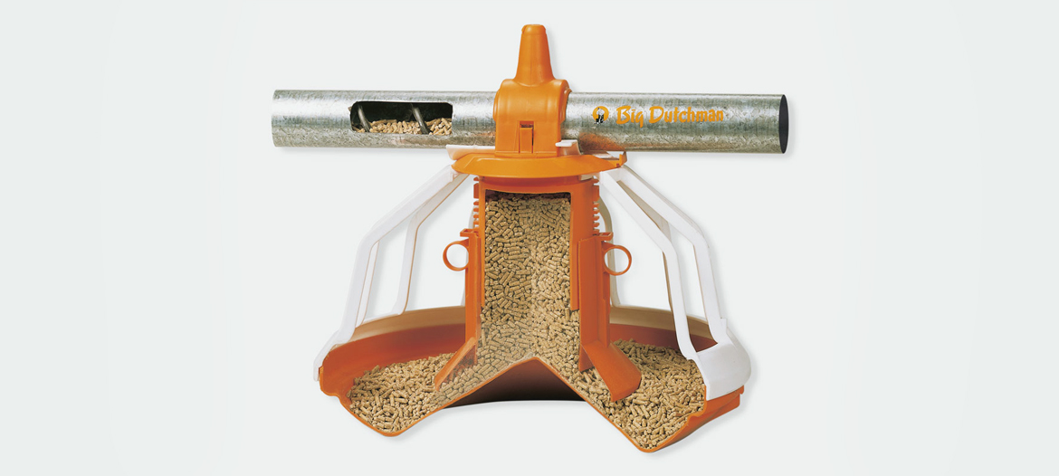 - Technical advantages such as a screwless snap-on system, free-swing or fixed pan, sliding shut-off and deep-sitting V-shaped bottom for day-old chicks