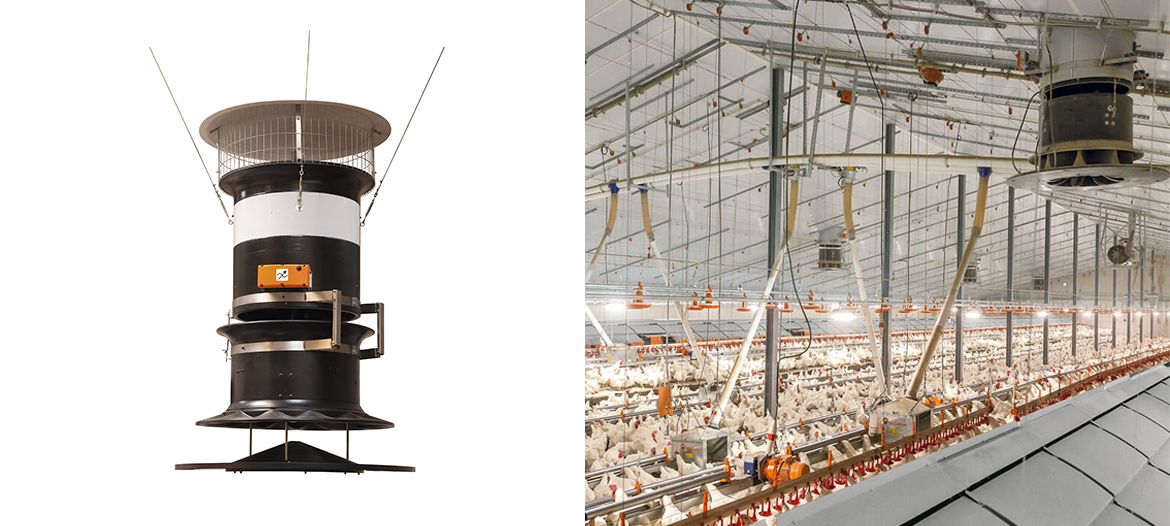 Tuỳ vào vị trí của van bướm, bất cứ mức độ nào giữa 100% không khí sạch (vị trí dọc) và 100% không khí tái tuần hoàn (vị trí ngang) sẽ đi vào trang trại. Giữa những vị trí này, một lượng nhất định không khí trong lành trộn với không khí trong chuồng được hút vào qua lỗ mở rộng 10 cm của ống khói. Điều này cho phép trang trại được cung cấp không khí trong lành, pha trộn hoặc tái tuần hoàn tuỳ vào những yêu cầu thông khí.