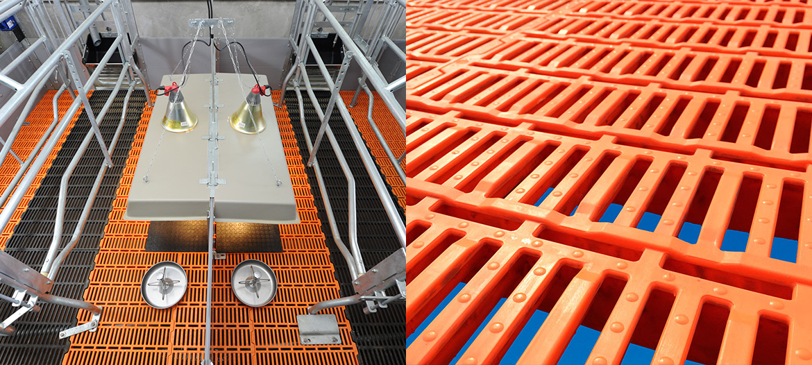 Các tấm sàn chất lượng cao tiện lợi trong việc nuôi heo nái và heo con vì chúng có nhiều lợi ích tốt cho cả vật nuôi và nhân viên. Việc các tấm sàn linh hoạt đủ để làm khuôn làm cho chúng trở thành một sự lựa chọn thiết yếu. Khả năng dùng nhiều sự kết hợp tấm lát cũng góp phần tạo nên môi trường chuồng nuôi lý tưởng.