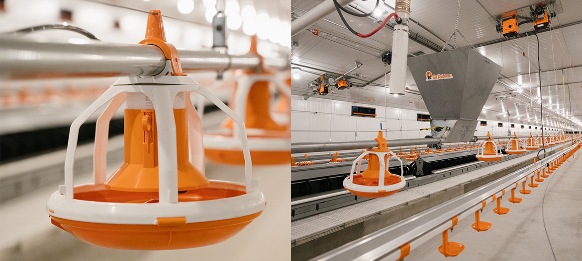 - Phân phối thức ăn nhanh chóng, cùng lúc và đồng đều tới tất cả các máng khắp chuồng nuôi