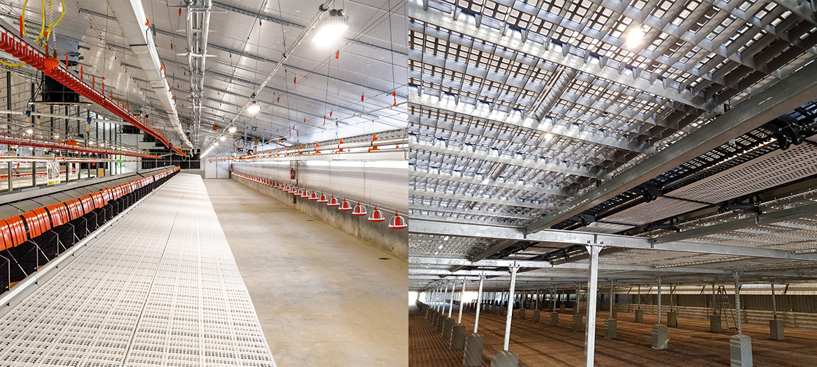 Tiện để sử dụng và làm sạch hơn các phương pháp lát sàn truyền thống vì sàn cho phép chất thải rớt qua dễ dàng xuống nền nhà. Điều này dẫn đến độ vệ sinh cao hơn để giữ đàn gà khoẻ mạnh bằng cách giảm thiểu những ca viêm da chân và tổn thương ức trong khi tăng tỉ lệ tăng trưởng và chuyển hoá thức ăn.