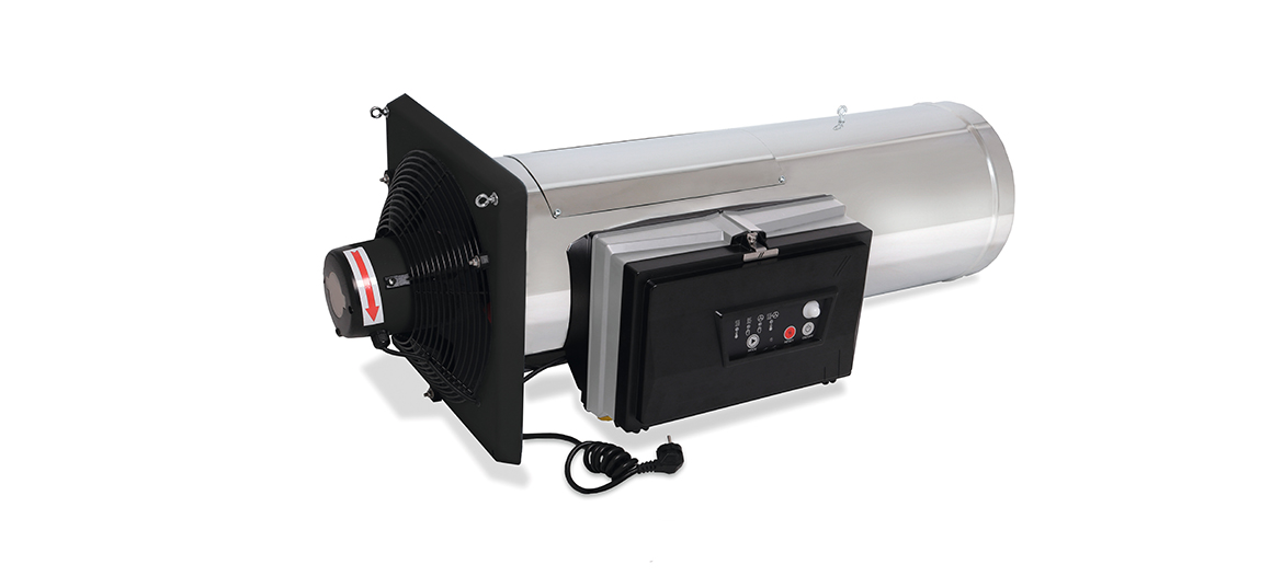 Quạt ở bên trong máy mang lại một phạm vi khuếch rộng và phân phối khí ấm quanh chuồng một cách hiệu quả. Bộ điều khiển tự động (ACU) cung cấp thông tin về trạng thái hoạt động của máy sưởi.